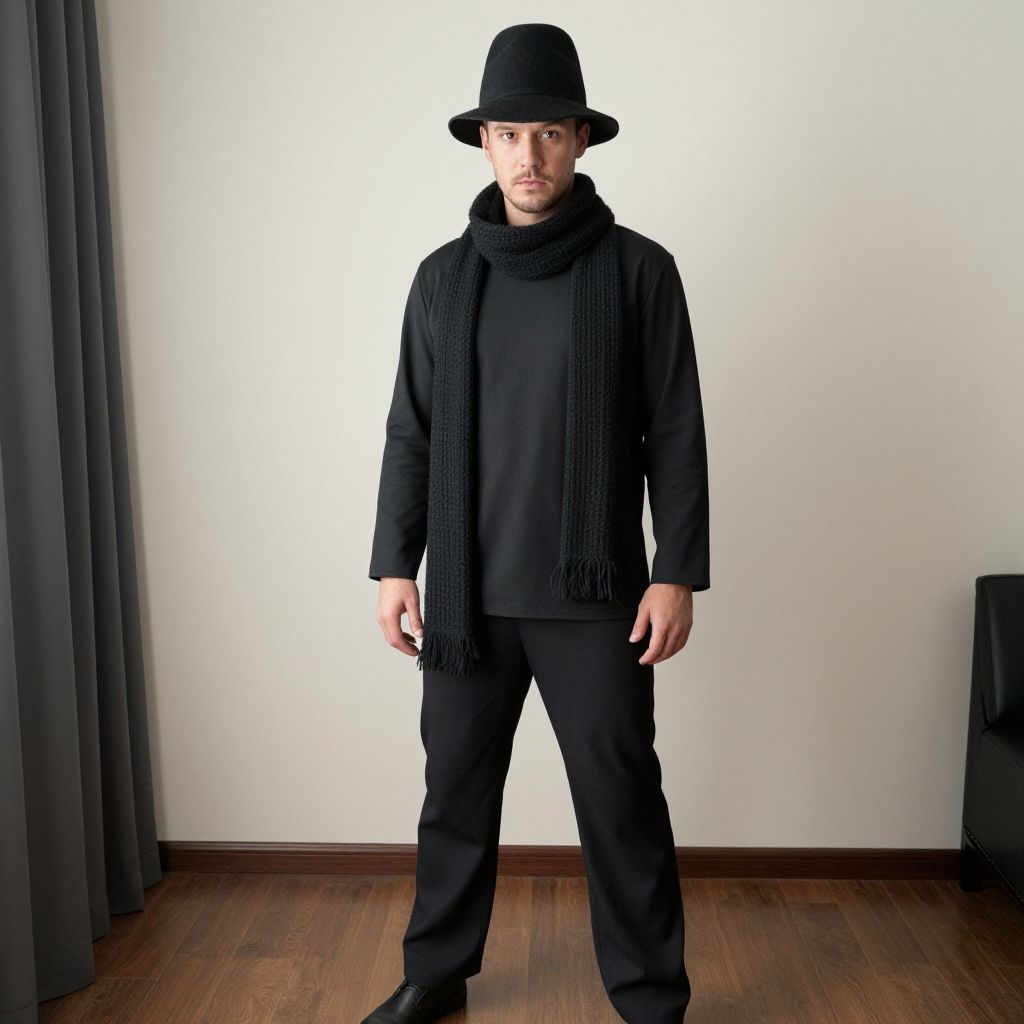 Man Evolution Rogue Costume, man in a hat and scarf standing in a room