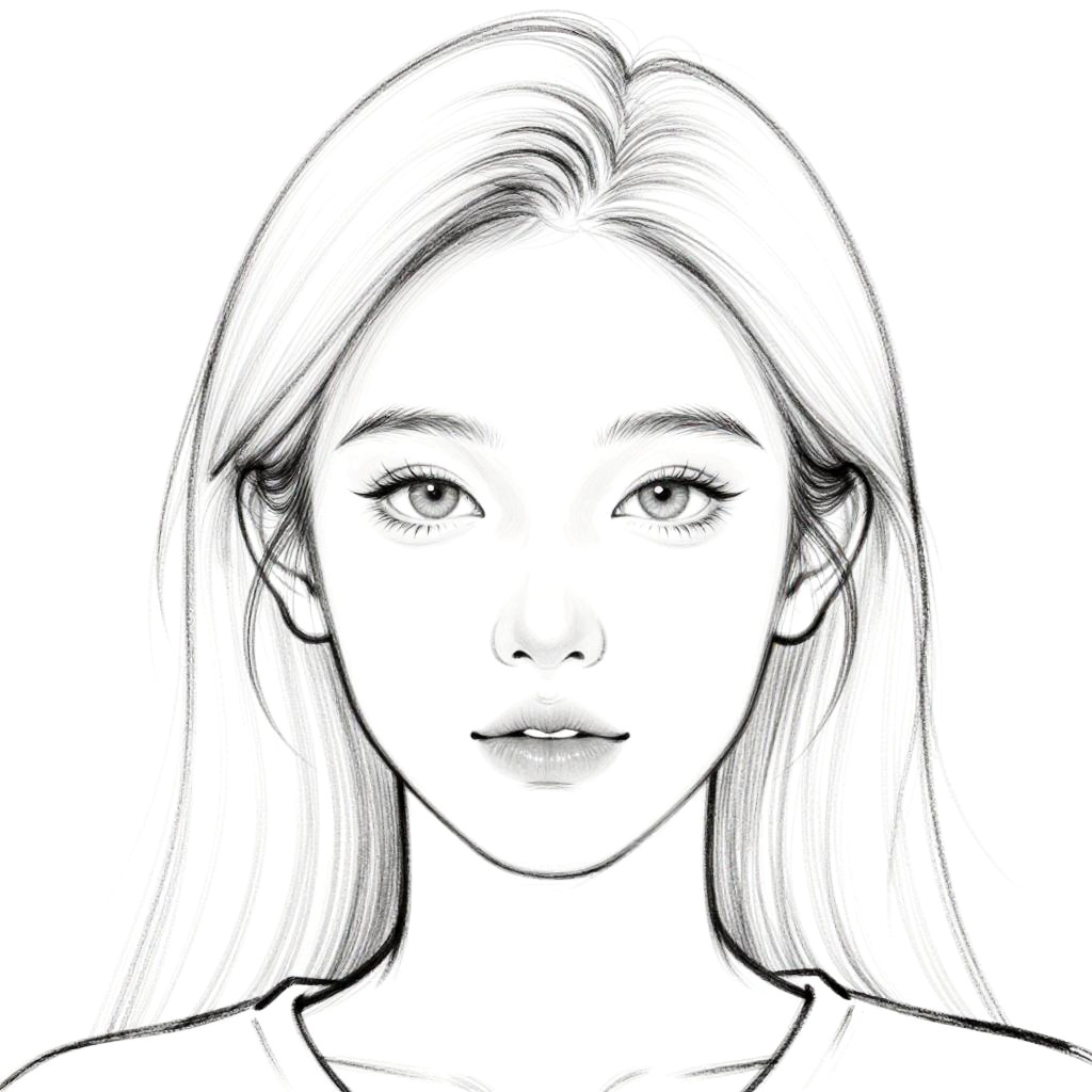 Free line art generator concept, artistic portrait sketch with flowing smooth lines, high detail face features, monochrome drawing style, minimalist yet expressive artwork