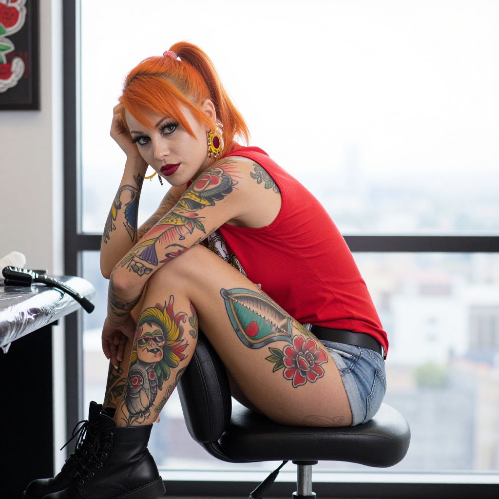 Vibrant Red-Haired Tattooed Portrait