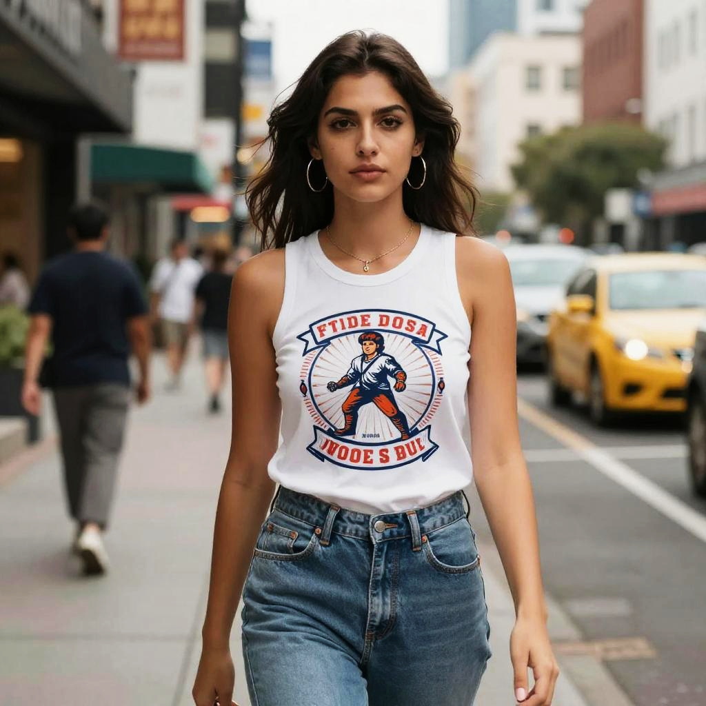 Tank Tops Woman Graphic, woman standing on the street in a city