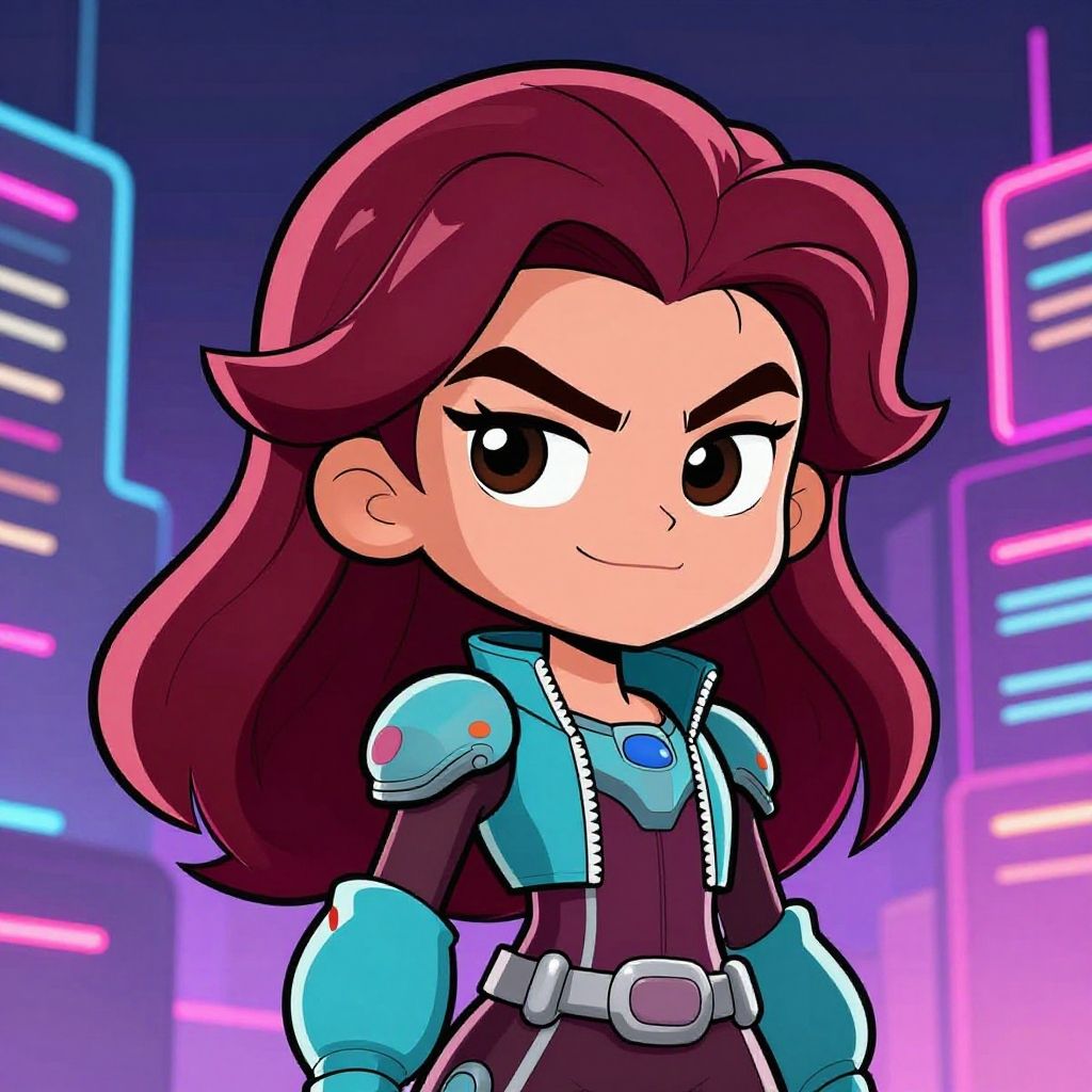 Futuristic Burgundy-Haired Cartoon Character