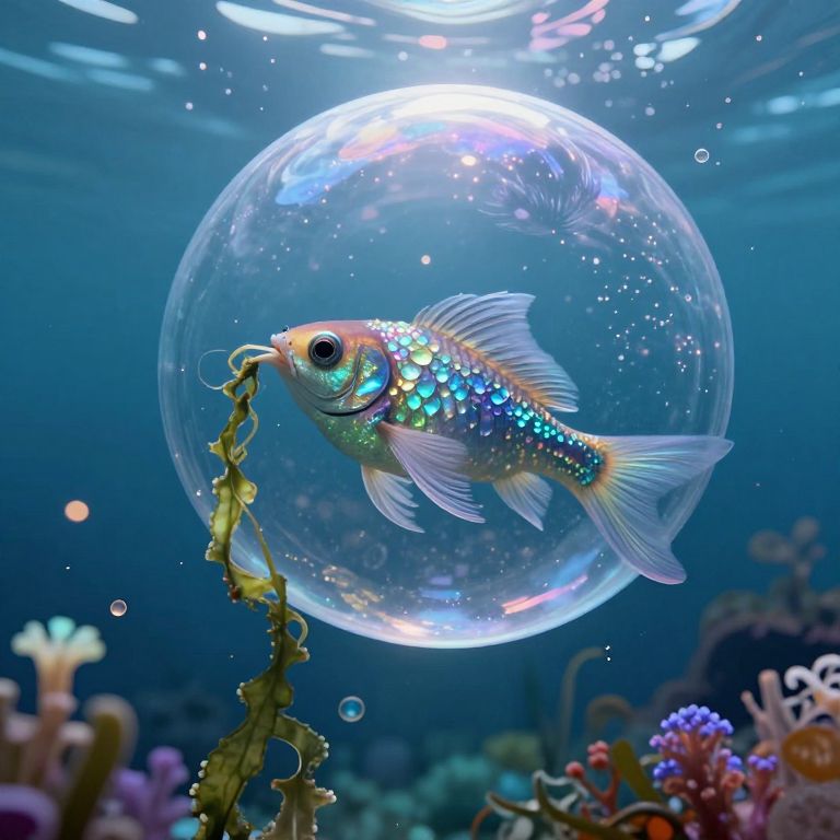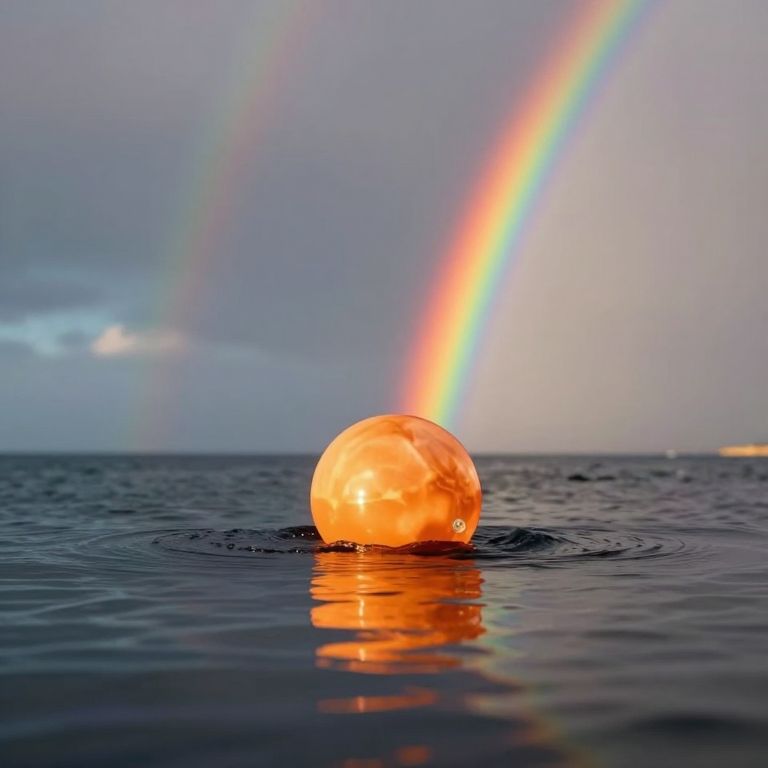 A disoriented sun falls upside down, rolling along the ocean’s reflective surface like a burning marble, casting inverted rainbows across the sky.