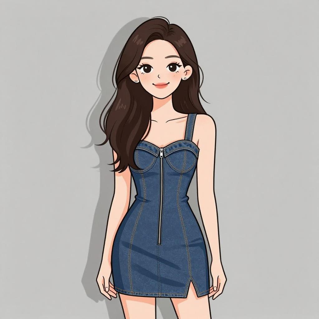 Smiling Woman in Denim Mini Dress