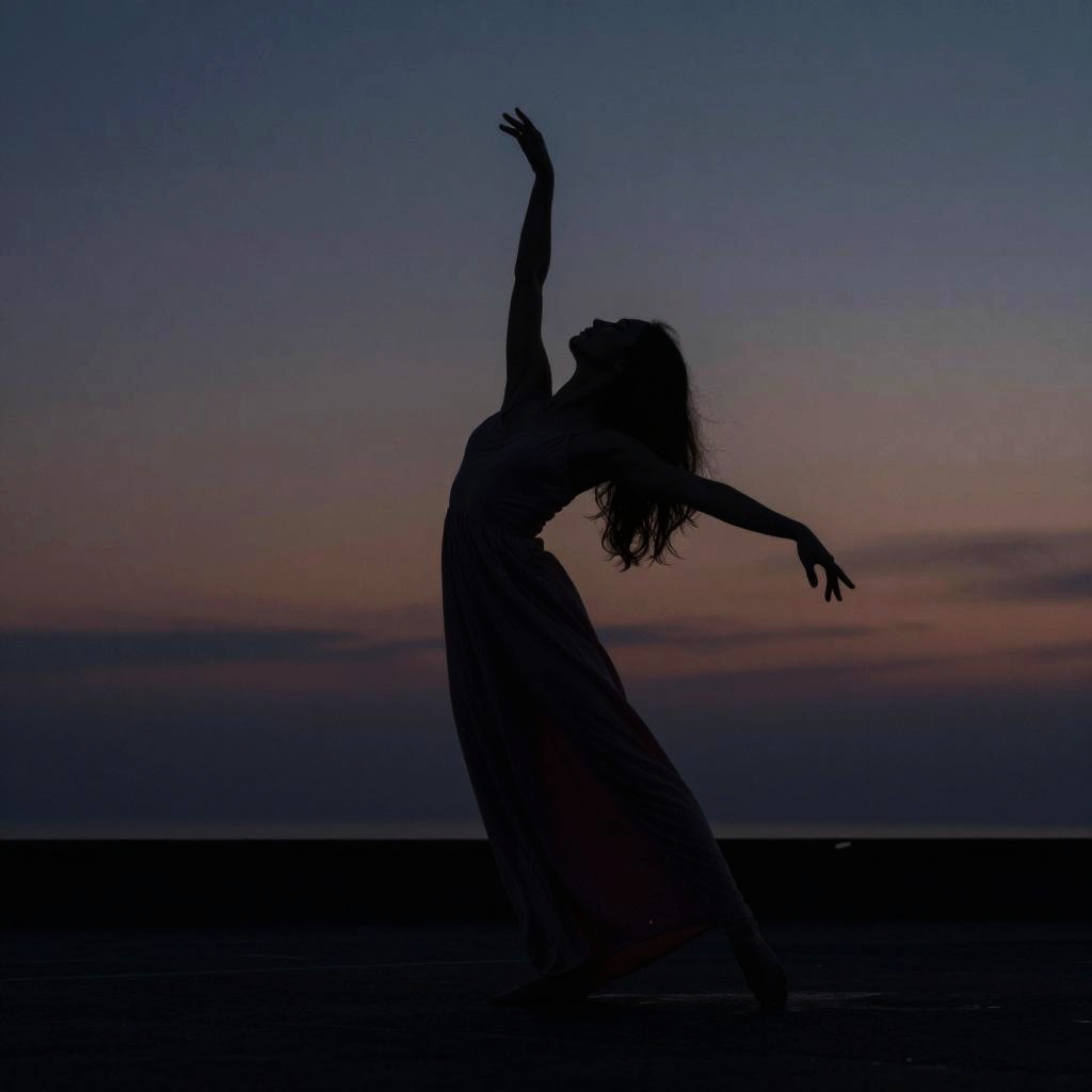 An ethereal depiction of an enigmatic shadow dancer, bathed in subtle twilight hues, with soft velvet shadows and faint glimmers, art inspired by Elena Gordon.