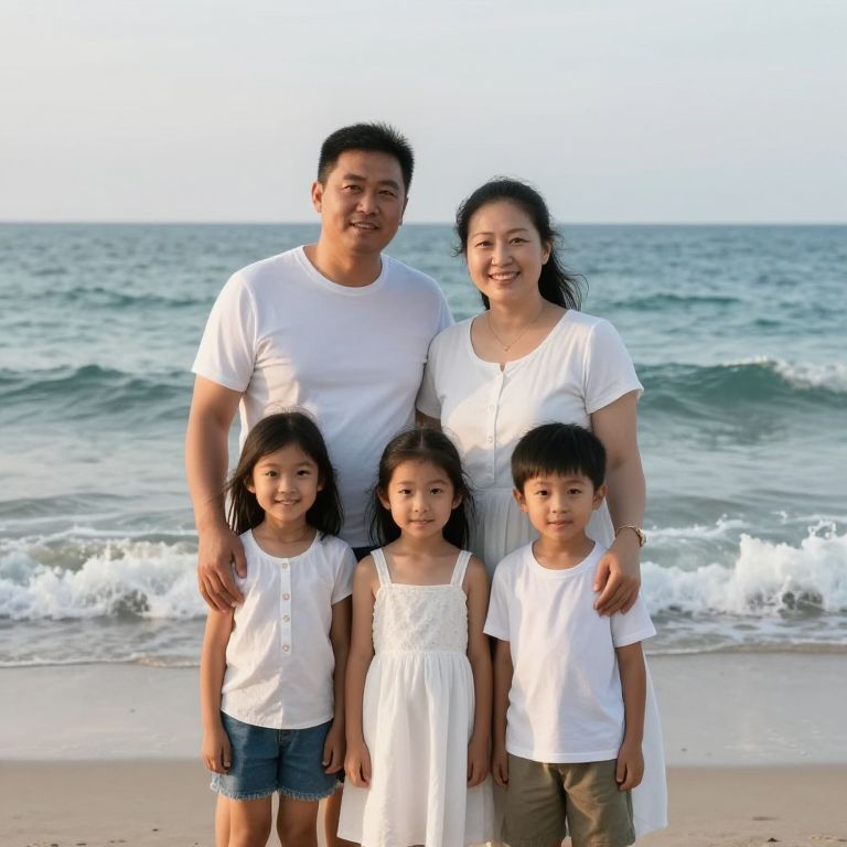 Capturing the essence of familial bonds amidst the timeless rhythm of the ocean, this portrait radiates a profound sense of joy, unity, and the enduring spirit of togetherness.