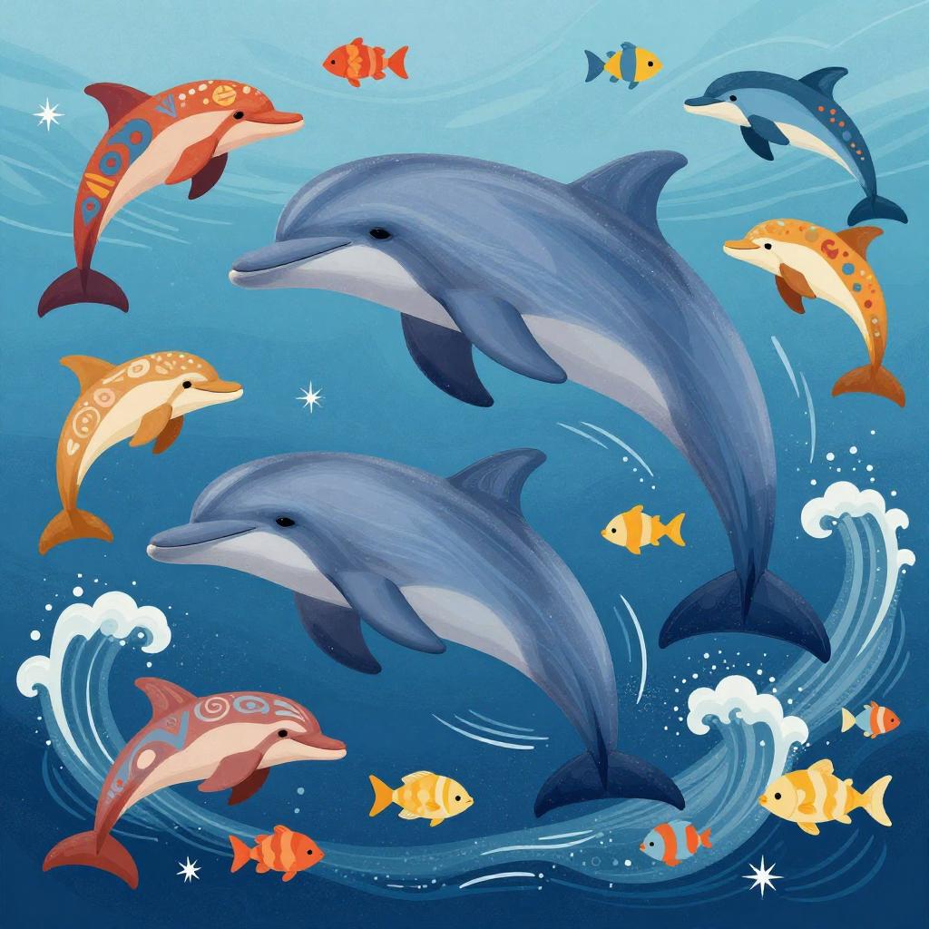 Dynamic Ocean Scene with Colorful Dolphins