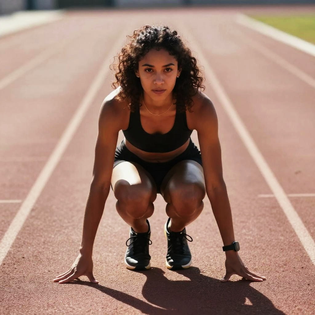 Intense Female Sprinter Starting Race