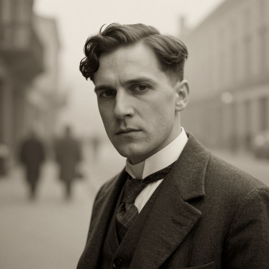 Storytelling realistic portrait photo from the year 1942, a 36 year old german jewish man, journalist,