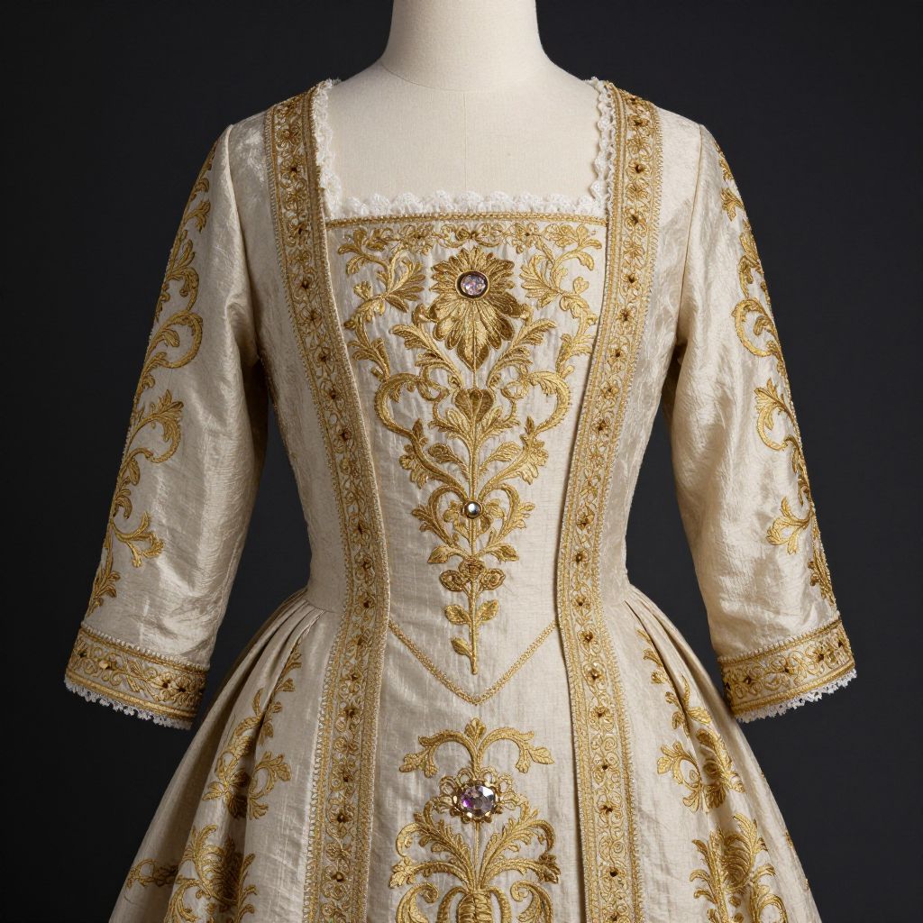 Baroque Woman's Dress with Gold Embroidery
