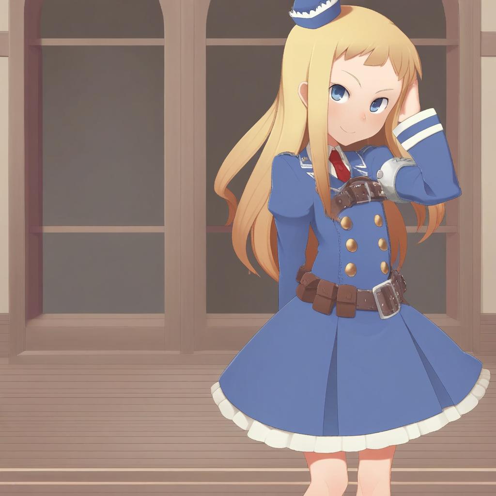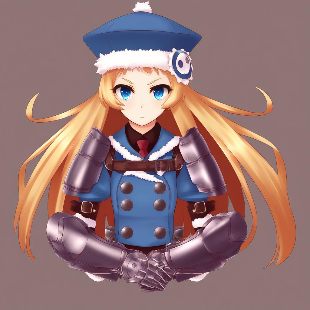 Gunner (sekaiju), sekaiju no meikyuu, 1girl, blue eyes, blonde hair, long hair, hat, by artist polarityplus, leet