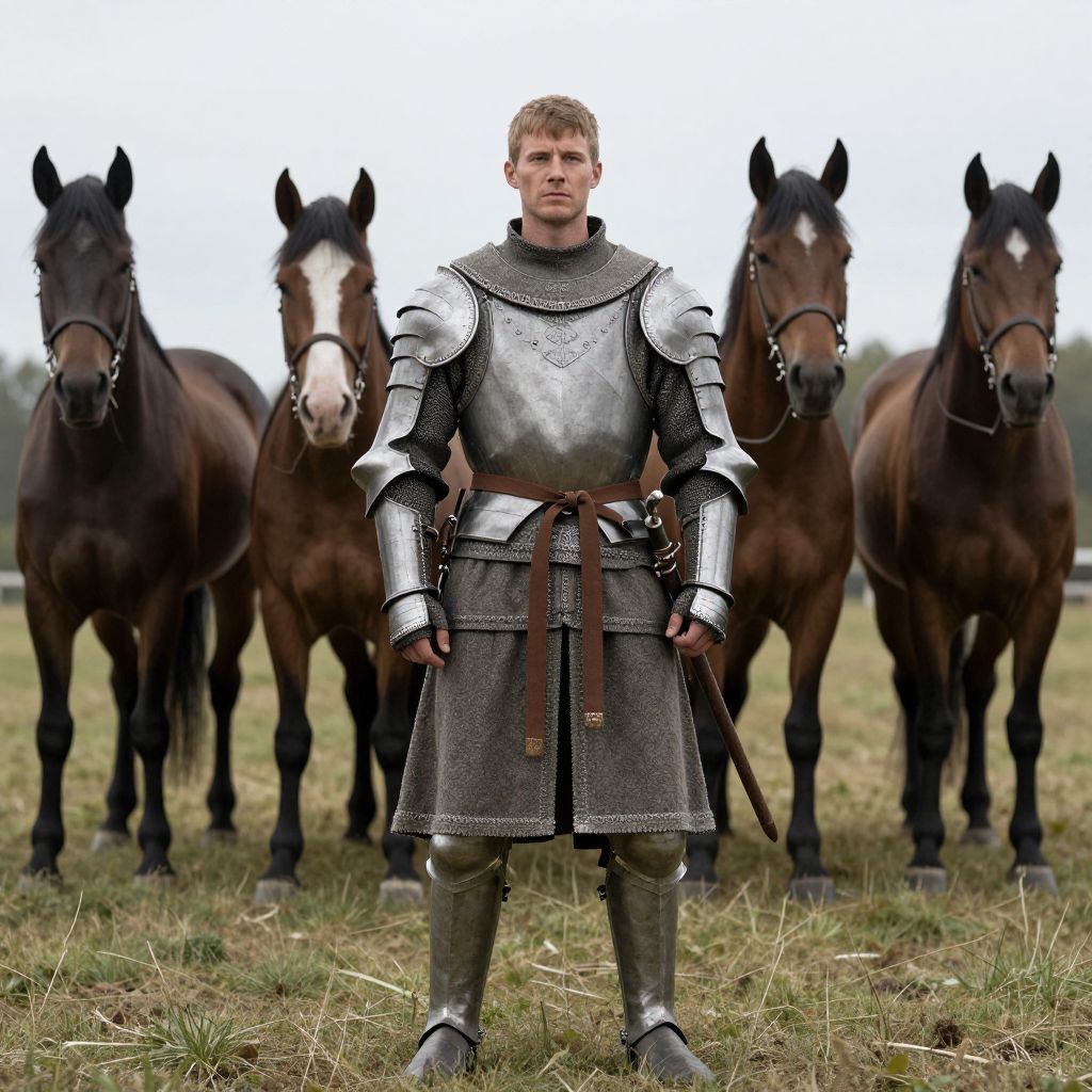 Medieval Armored Warrior with Horses