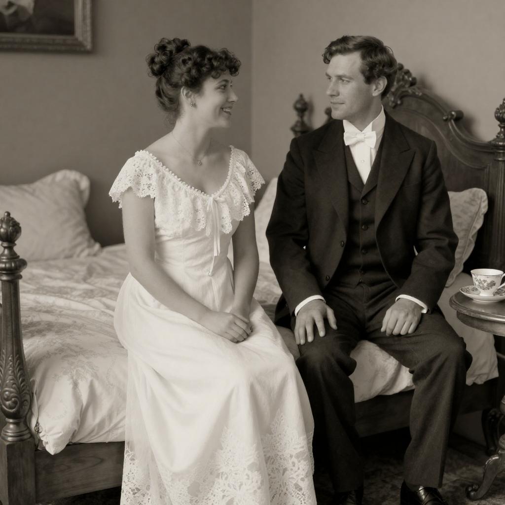 Victorian Women Reclining on Plush Sofa