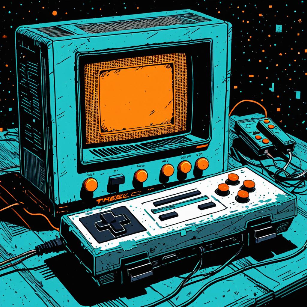 Sticker of a retro gaming console using an old CRT monitor computer, digital painting, highly detailed, black background