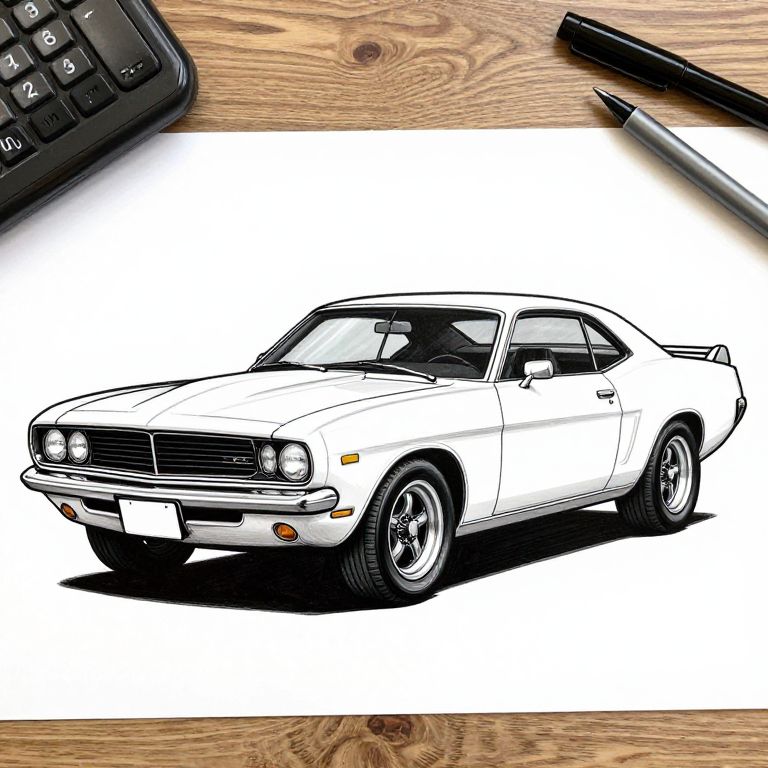 Muscle Car Line Art Drawing