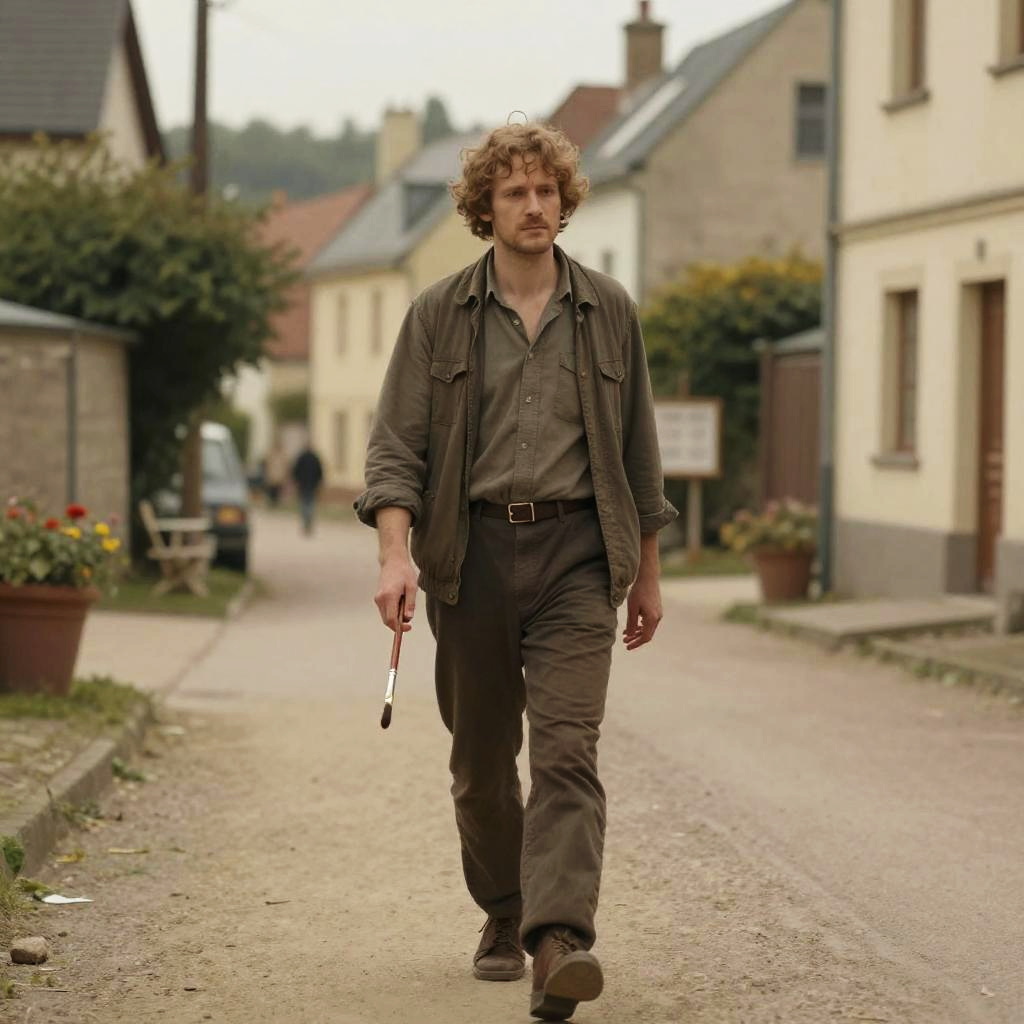 Pensive Artist Strolling Through Quaint Village