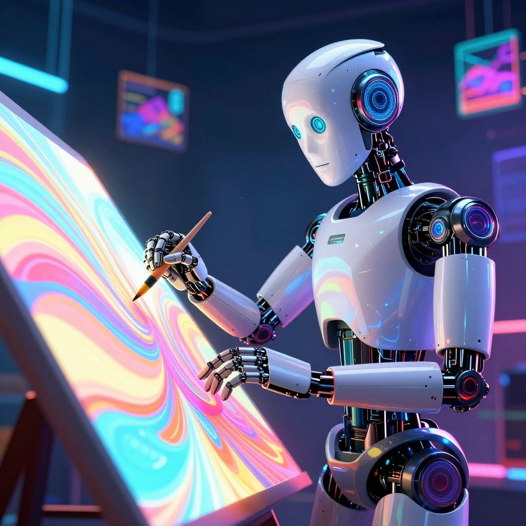 Futuristic AI Art Creation Scene
