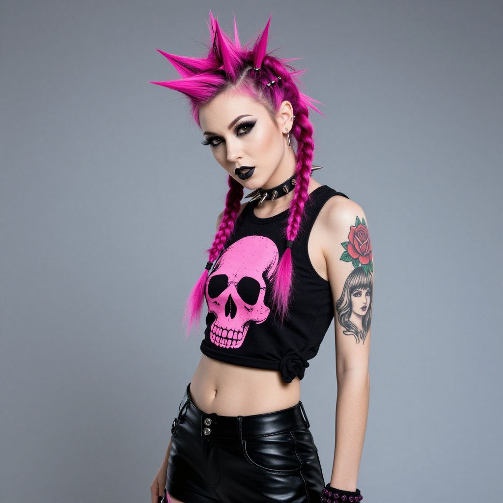 Punk Rock Woman with Pink Braids