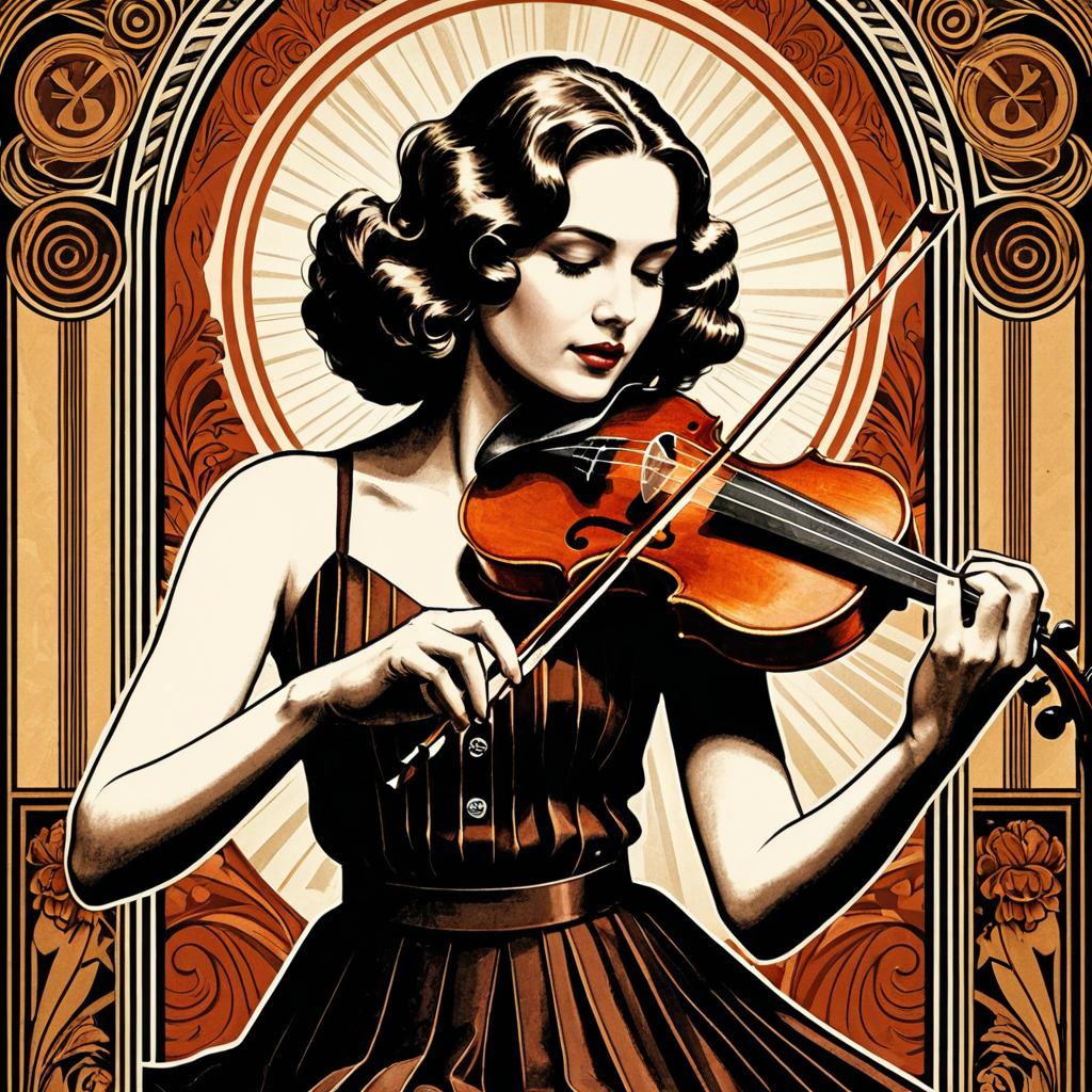 Elegant Art Nouveau Violin and Moon Logo