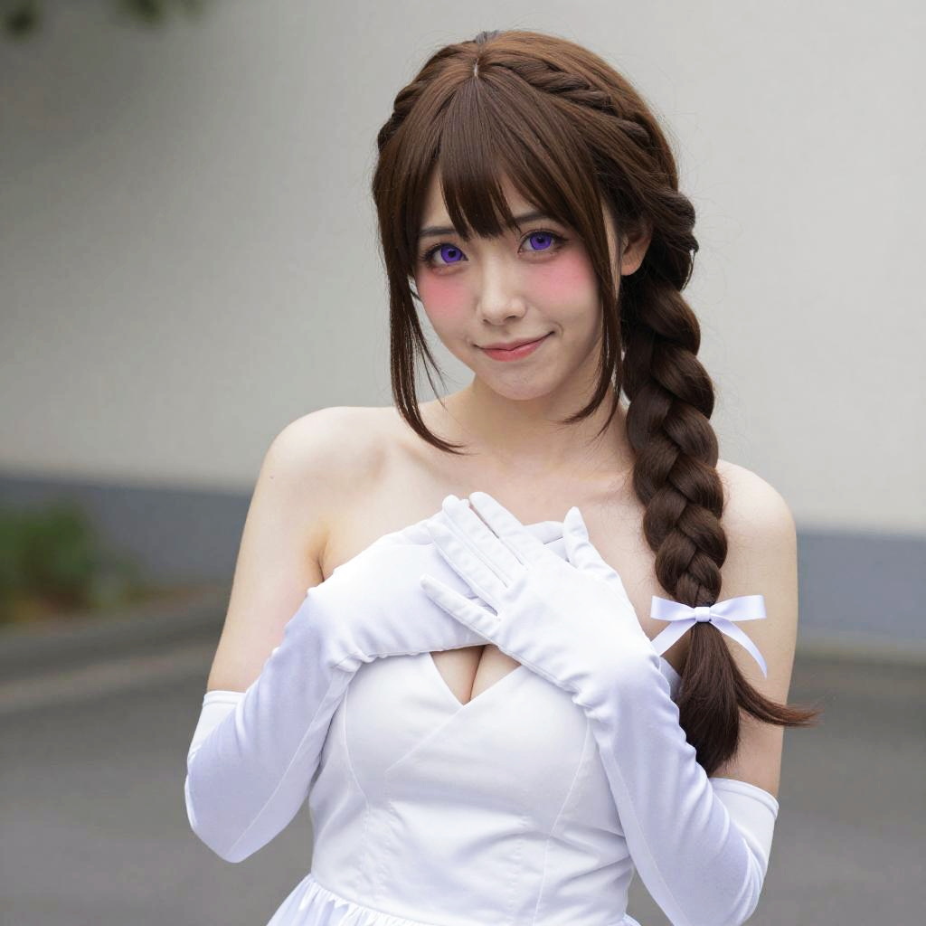 Full body, aerith gainsborough, 1girl, brown hair, braid, green eyes, pink dress, barefoot, indoors, looking at viewer, blush, elegant accessories, kneeling on one knee, warm candlelight, arched stained-glass window, hand-embroidered hem with ribbon trims