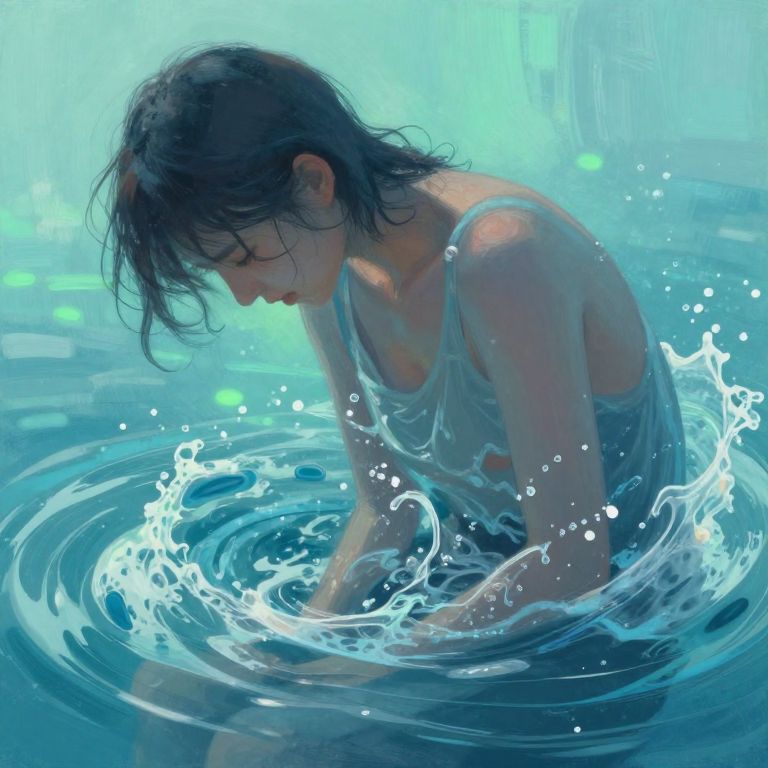 Flashbacks illustrated as waves of light and shadow crashing over a figure sitting alone, cascade of blurred memories in translucent layers, dreamlike environment with soft, diffused lighting, painterly texture with deep emotional undertones.