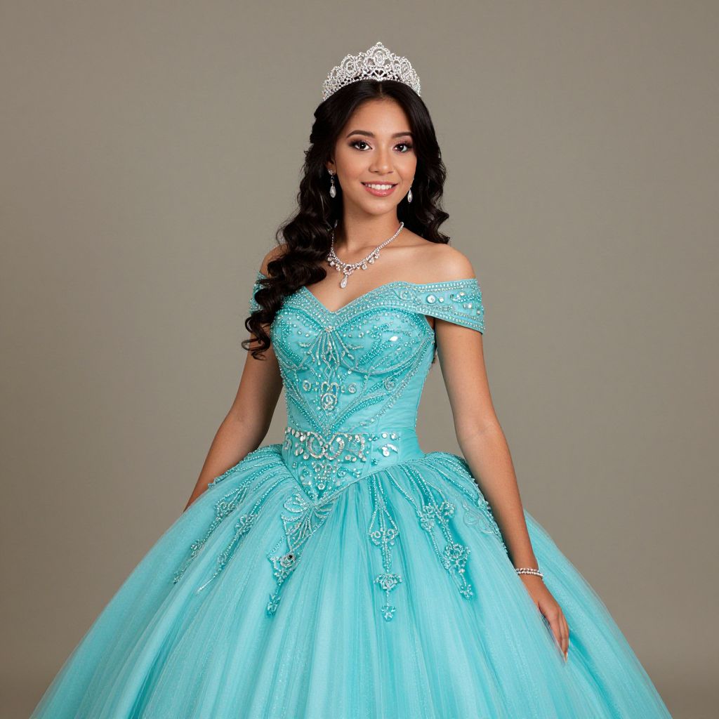 Radiant Young Woman in Turquoise Quinceañera Gown