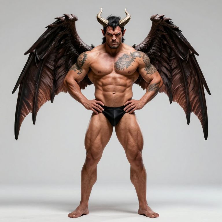 Muscular Demon with Wings and Tattoos