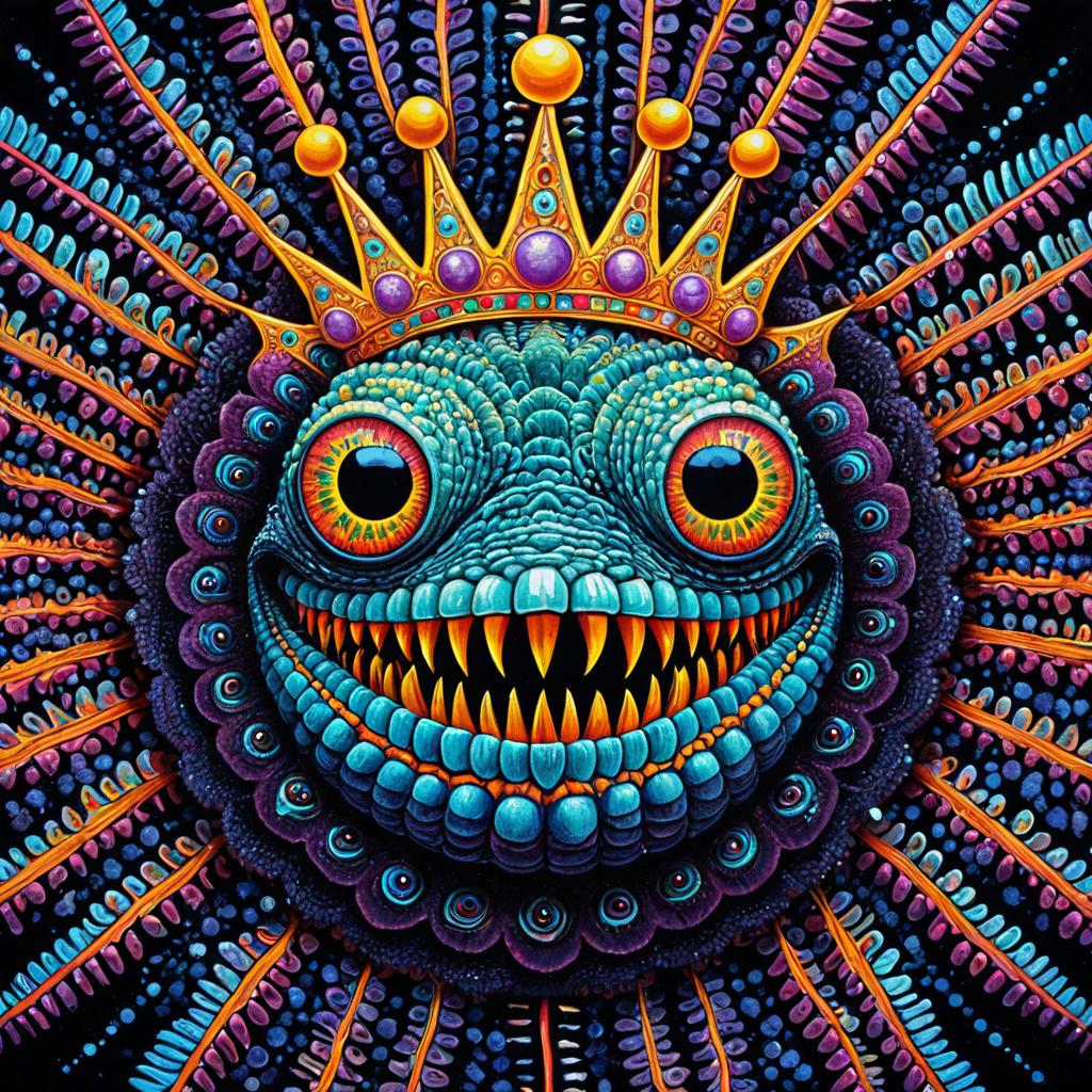 Psychedelic Crowned Holo-Worm with Human Eyes and Teeth