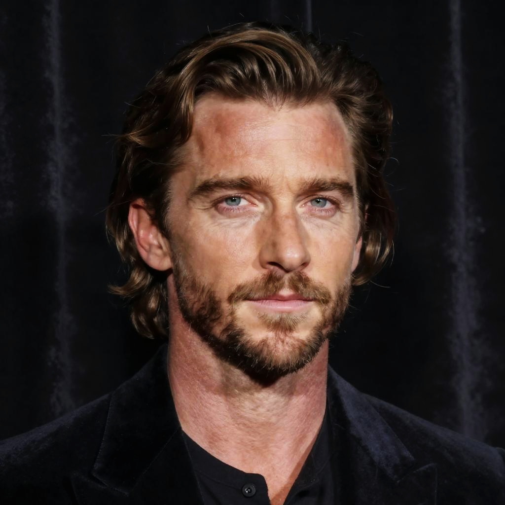 Tobey Maguire long hair styled loosely, classic Hollywood glam, soft diffused light, rich textures in hair, elegant expression, dark velvet background, ultra detailed