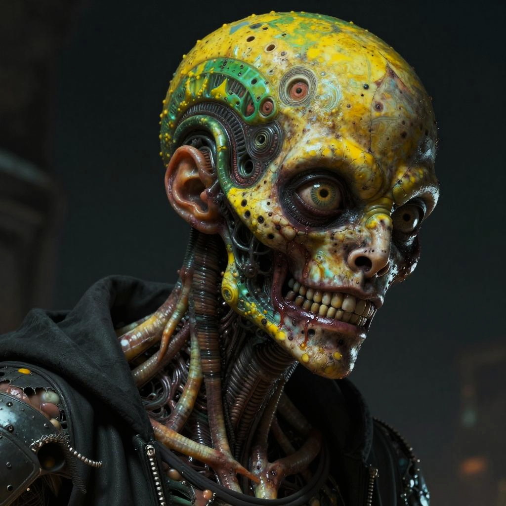 Grotesque Humanoid with Floating Skulls