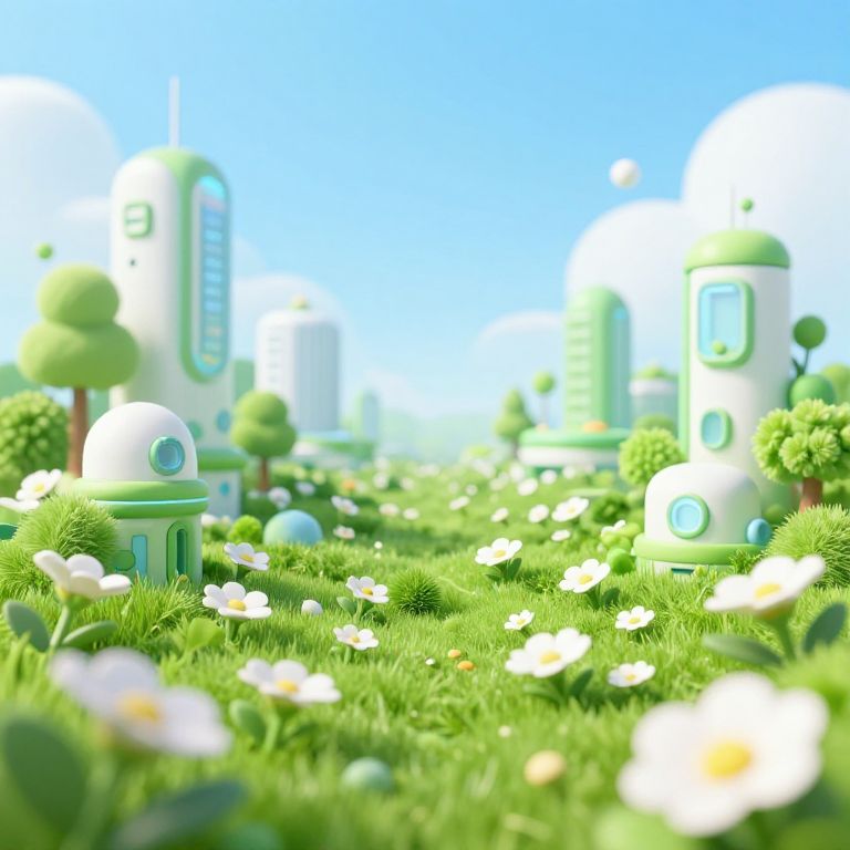 Macro Photography A close-up of flowers in a happy sustainable futuristic city, blue skies, green, clean, white, solarpunk, fantasy,