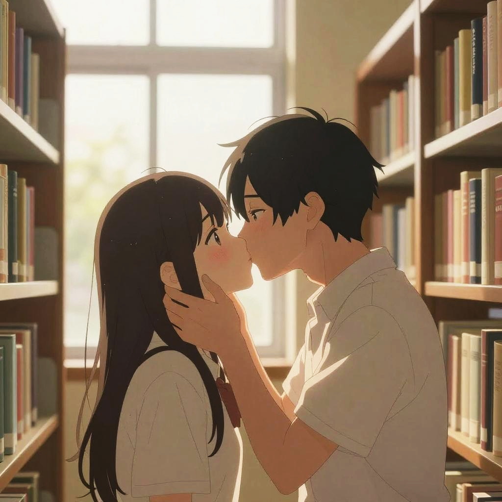 Anime Couple Kissing in Library