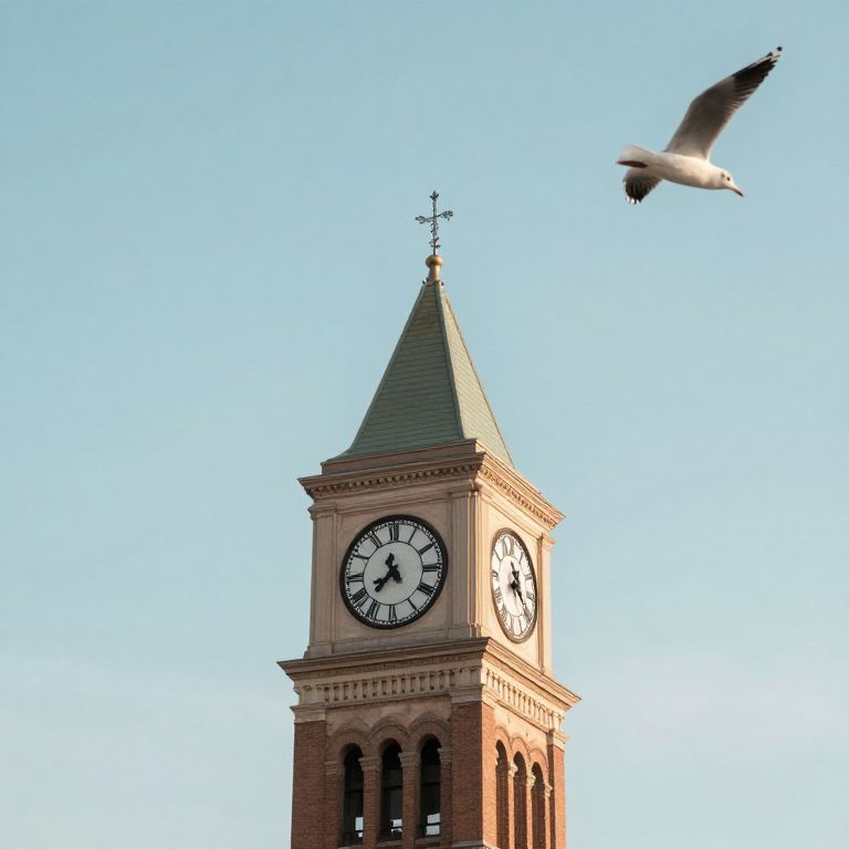 Time dissolves into flight as a clocktower, cloaked in the whispers of gulls, releases its essence into the boundless sky, embodying the eternal dance between stillness and freedom.