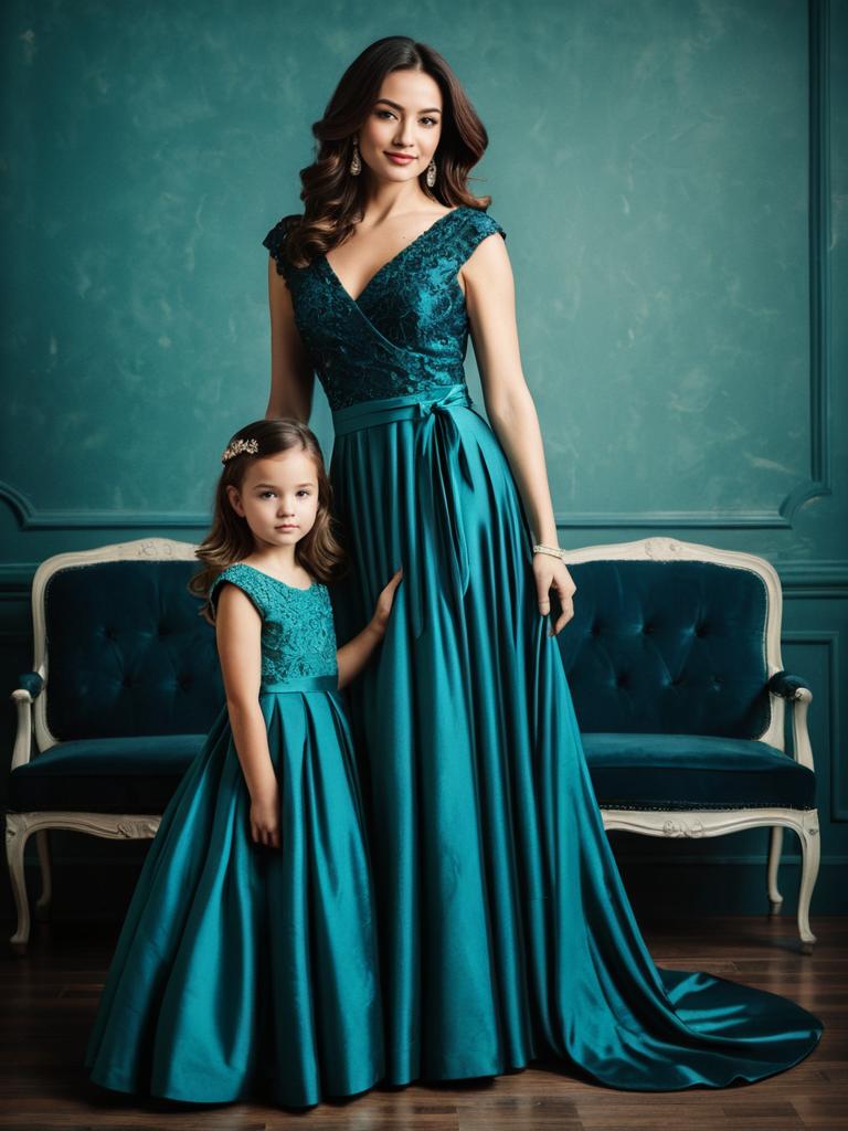 Mommy And Luxury Dress, mother and daughter posing in formal dress in formal setting --sref 1387