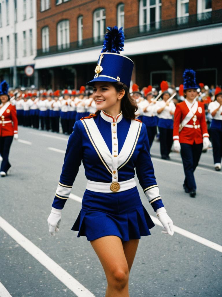 Woman in Majorette Uniform costume, candid portrait at parade festival