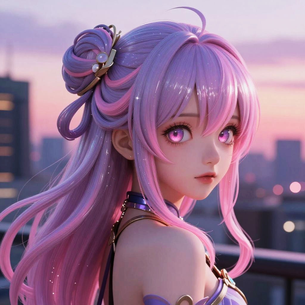 Cute anime profile pictures girl characterized by long flowing silver hair, ethereal glowing eyes, adorned with delicate flowers crown, soft ethereal lighting, fantasy forest setting with magical sparkles, highly detailed illustration with whimsical and dreamy mood.
