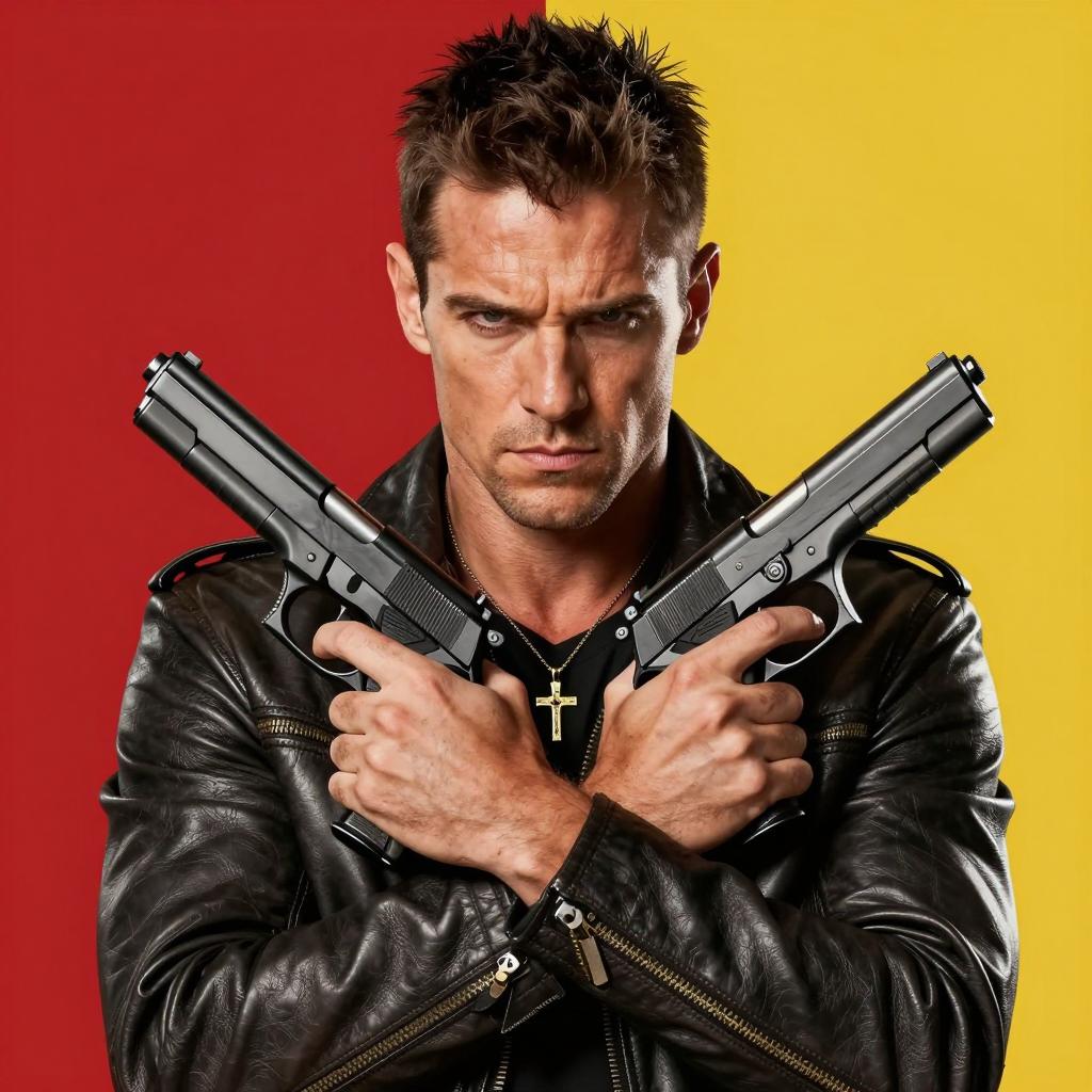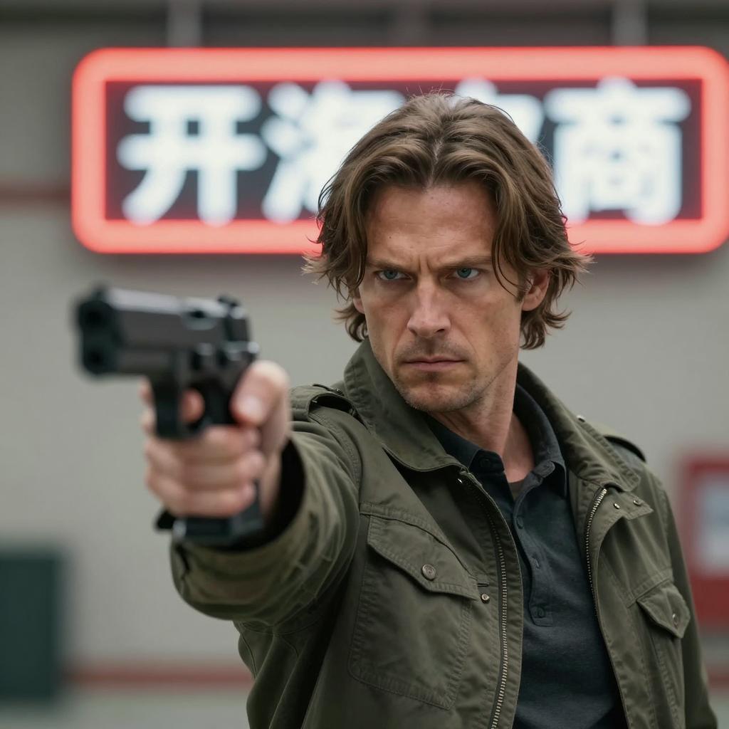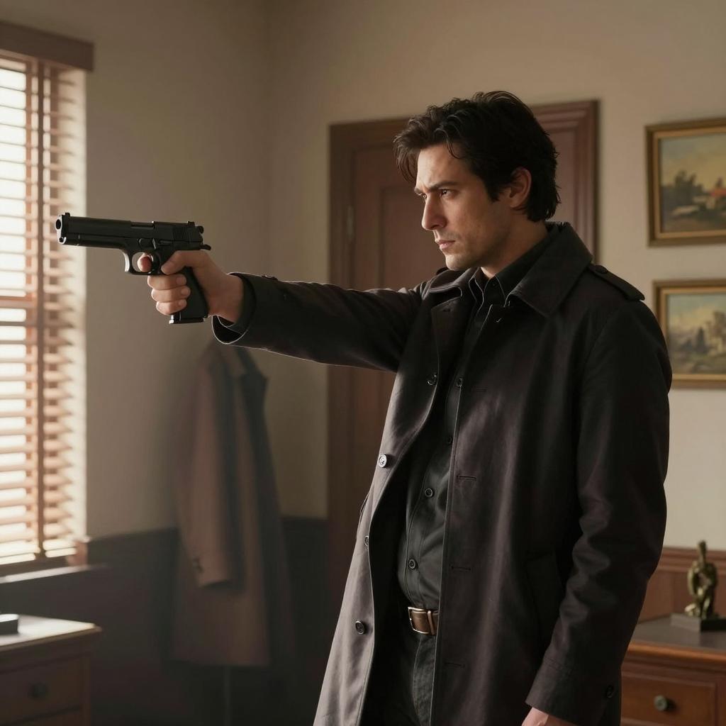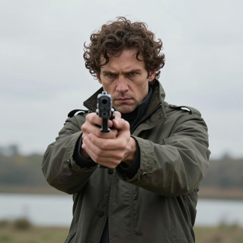 Intense Man with Gun in Misty Setting