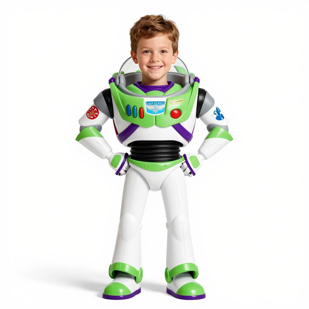 Cosplay adult buzz lightyear, photorealistic, two boys, standing, front view, modern space suit, green and white, transparent helmet, realistic ures, sunlight, grey background, serious expressions, short blonde hair, hands on hips, on chest, slight shadow, realistic lighting, cinematic quality, digital art, 3D rendering, sci-fi theme