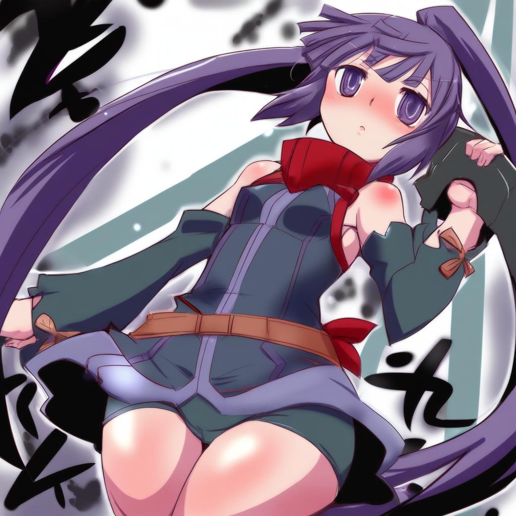 Akatsuki (log horizon), log horizon, 1girl, purple eyes, purple hair, long hair, very long hair, ponytail, detached sleeves, by artist sako (bosscoffee), leet