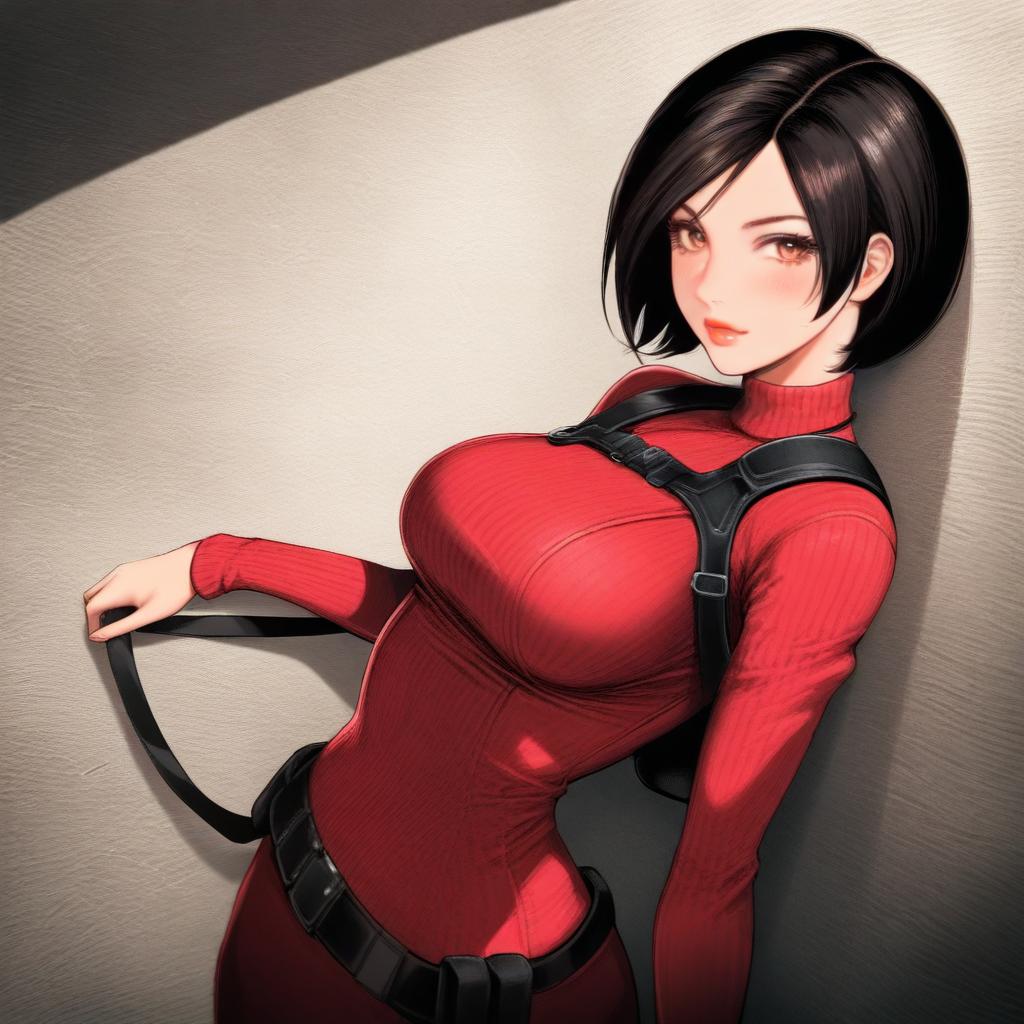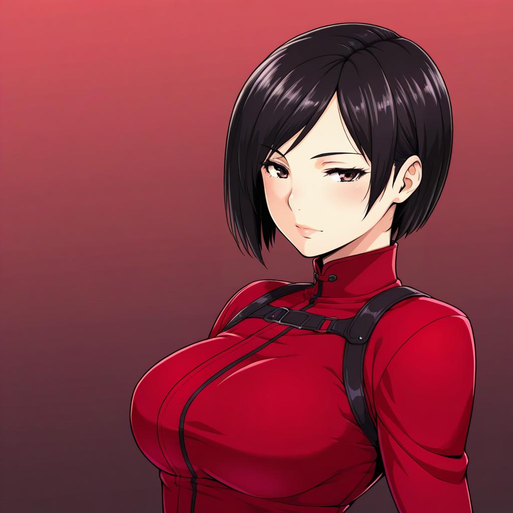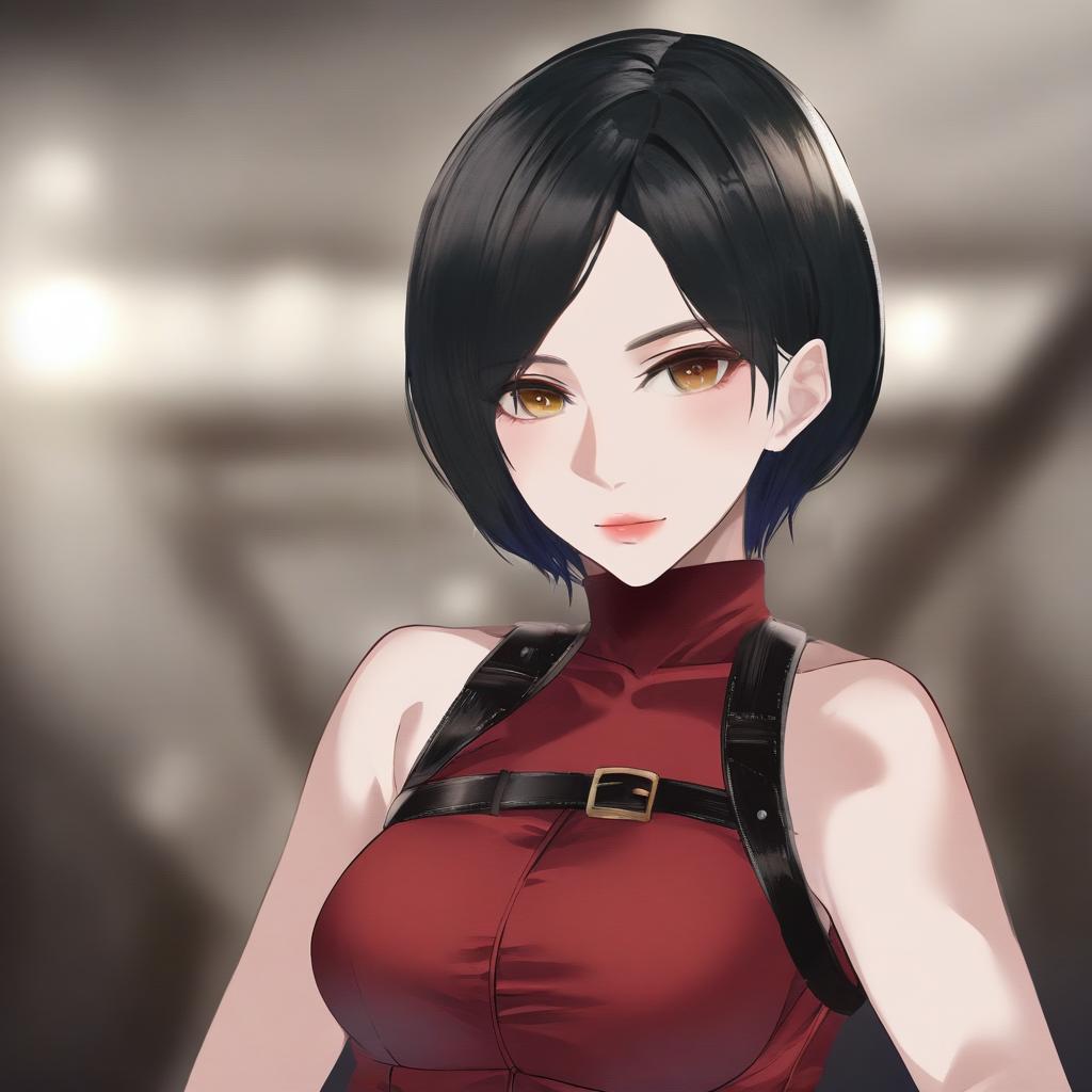 Ada wong, resident evil, 1girl, lips, brown eyes, short hair, black hair, bob cut, medium breasts, large breasts, red dress, by artist kakone, illustrious