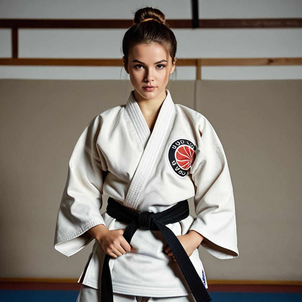 Young Woman Wearing Judo Gi with Black Belt
