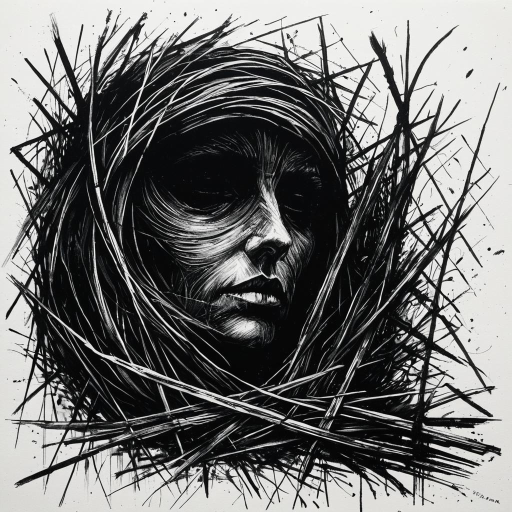 A painting titled Whispers of Nature featuring impressionist brushwork, with vibrant and joyful tones, high contrast, high resolution, combining artificial and organic styles
