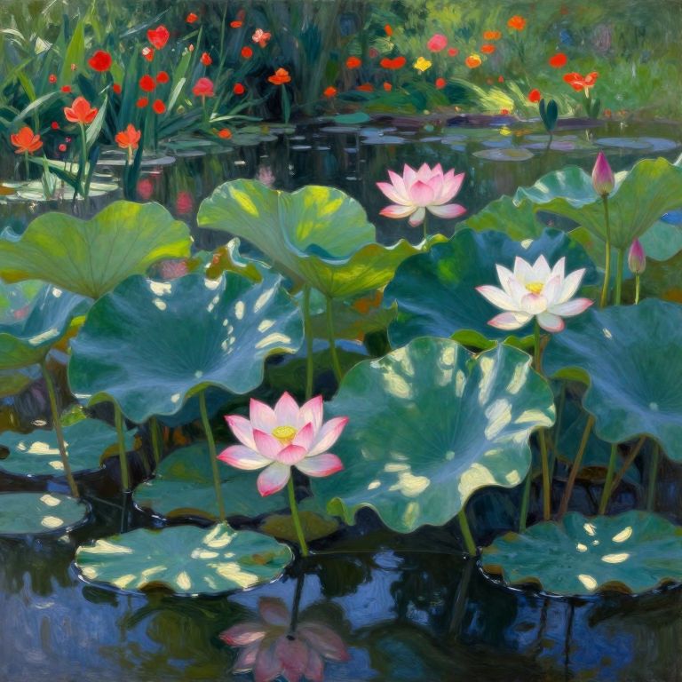 Impressionist Lotus Blossom Pond