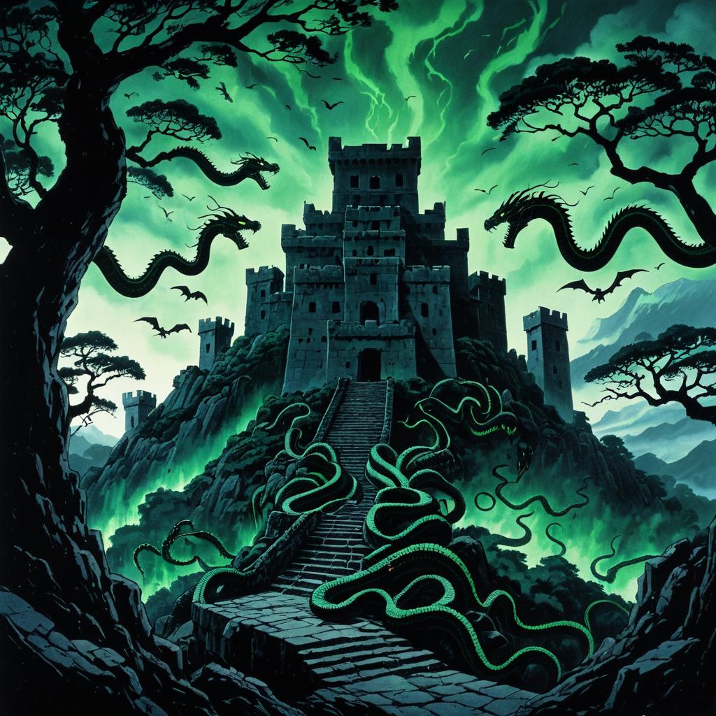 Giant Tortoise Flying Over Ocean at Dawn