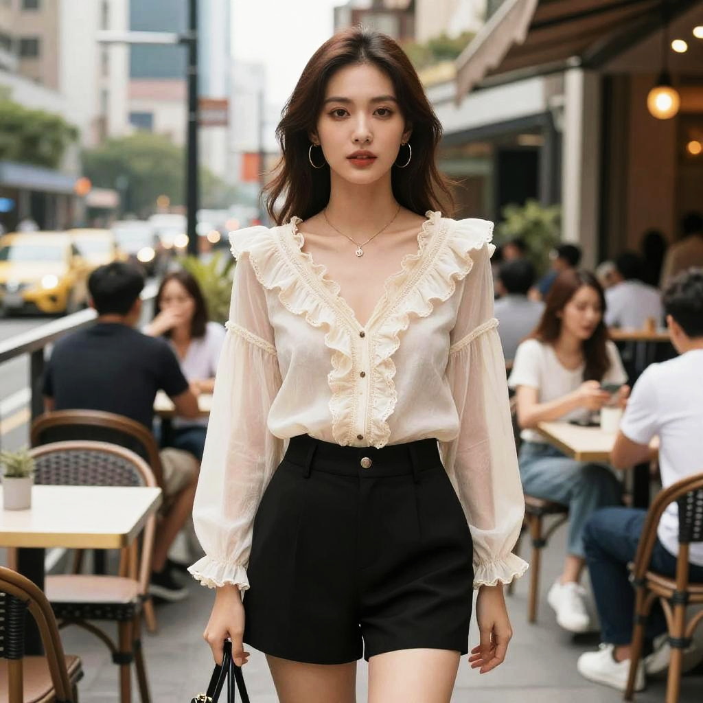 Casual Chic Woman Under String Lights