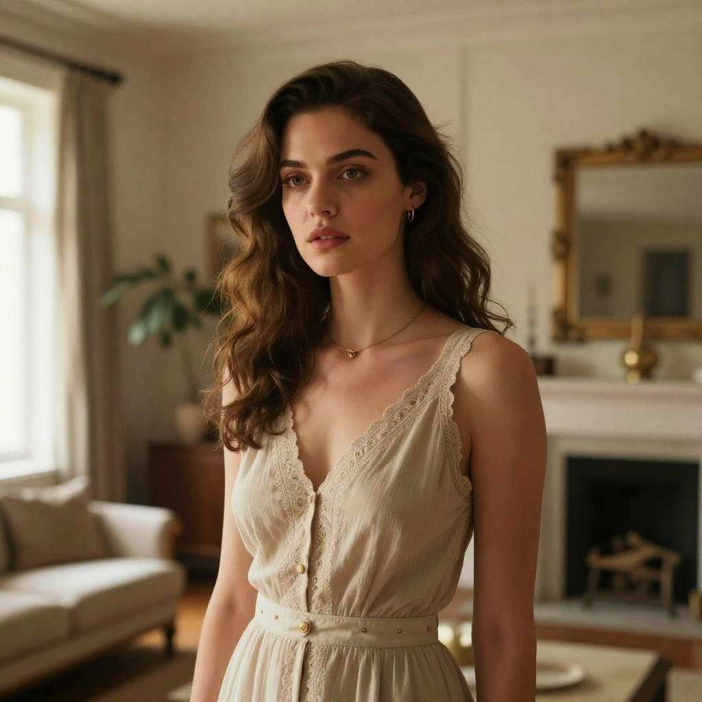 Photograph, cinematic color grading, fantasy, woman, beautiful, well-lit interior