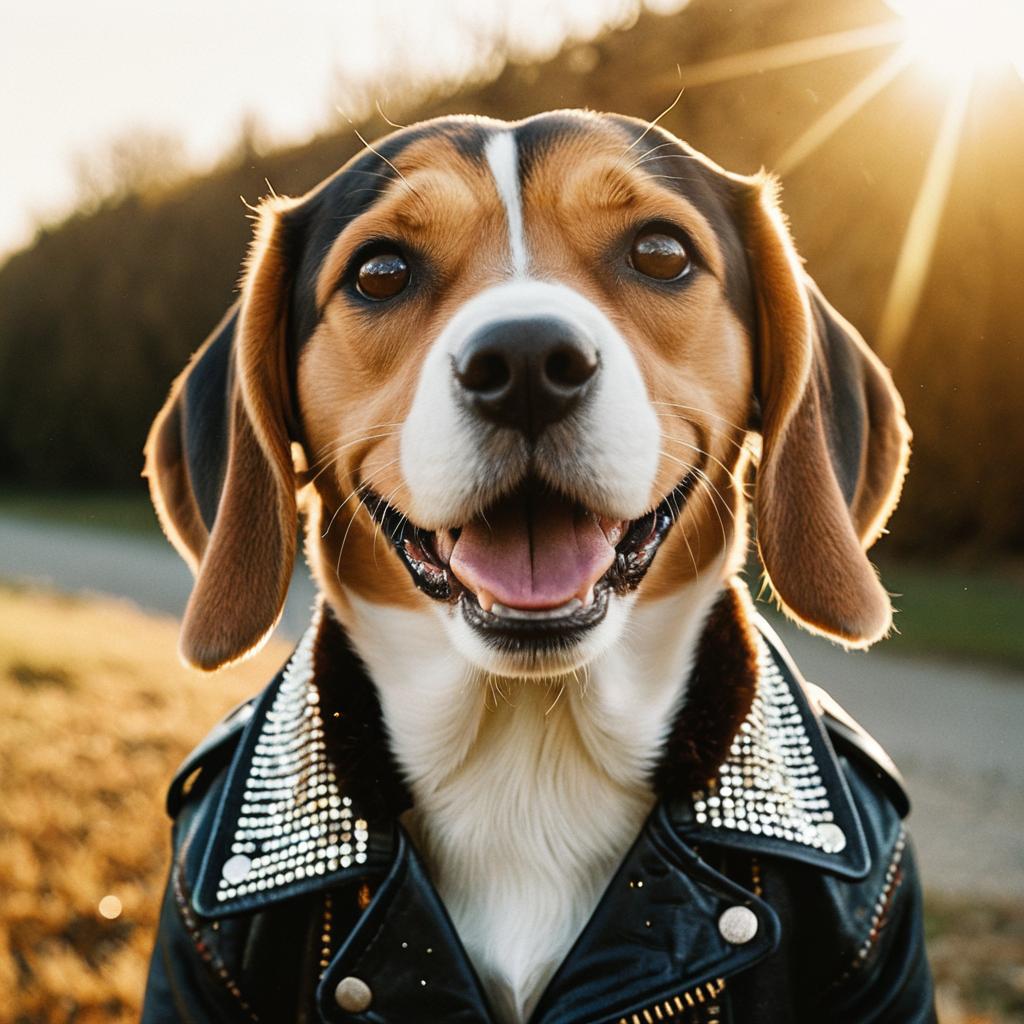 Portrait photo of a friendly anthropomorphic Dalmatian wearing a tailored navy blazer, highly detailed fur, warm brown eyes, outdoors in soft morning light, calm and approachable demeanor