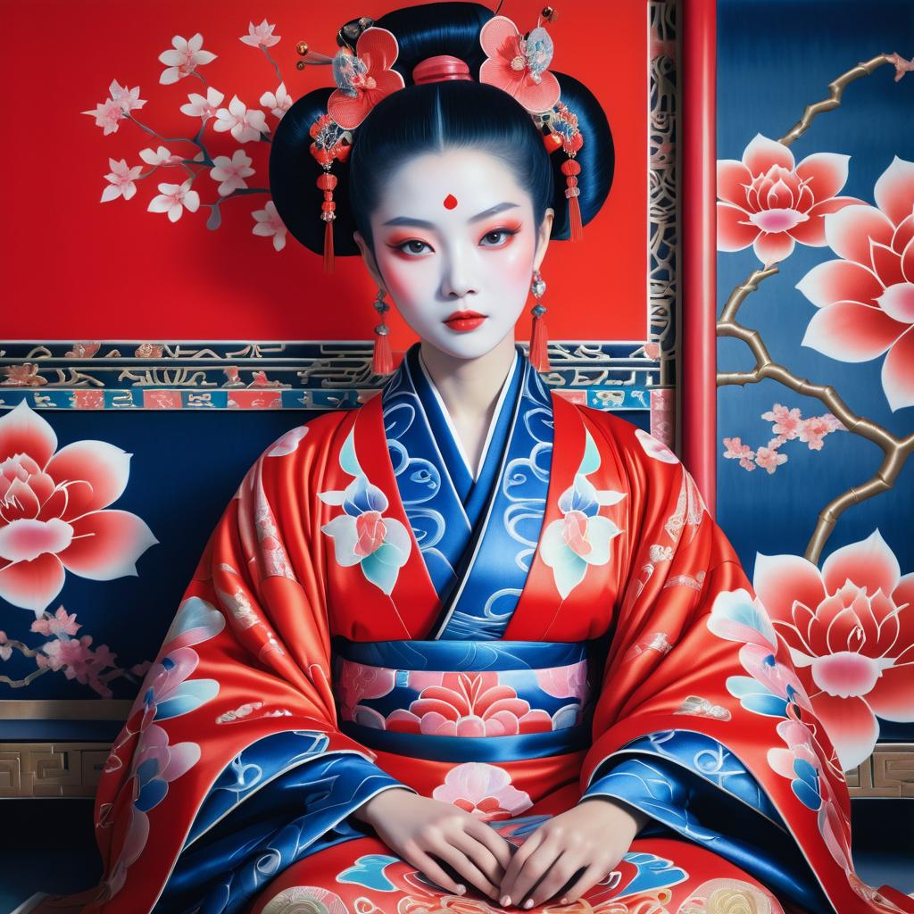 Woman in Traditional Kimono with Floral Mandala Backdrop