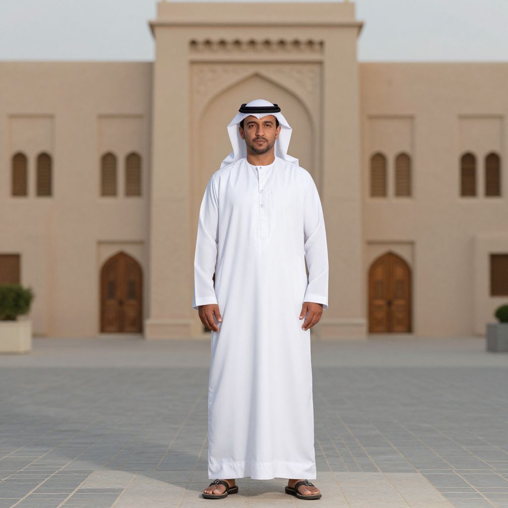 Rich Arab Costume, man in traditional clothing standing in front of a building