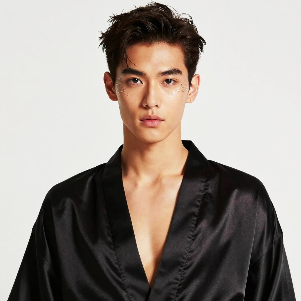 A professional photographic portrait of an attractive young male ballet dancer, wearing sleek black tank top and wrist wraps, with perfect eyes and slim body, white background, photographed by Tim Walker, 4K