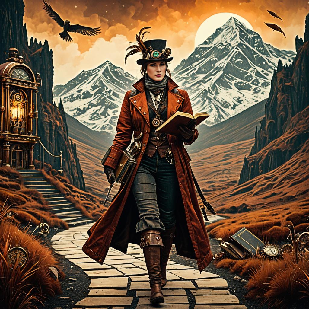 Enigmatic Steampunk Puppeteer in Surreal Landscape